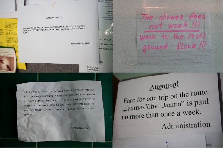 Koridorides märkan palju inglisekeelseid sildikesi. Muuhulgas annab administratsioon oma elanikele teada, et neile, kes eesti keele tunnis ei käi, bussisõidu raha ei hüvitata.