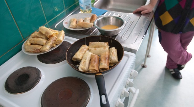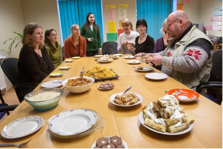 Köögis on vahepeal valminud toit, mida külalistele pakutakse. Seda on igaüks valmistanud vastavalt oma maitsele. Nii podisebki pliidil afgaani riis ning kameruni meeste liharoog, ukrainlased valmistavad aga suure koguse pliine.