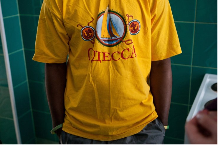 Illukale jõudes viidi meid kööki, kus majarahvas vaaritas. Kohe jäi ajakirjanike tähelepanu keskele lõbusas särgis must mees nimega Ivrahim Elevandiluurannikult. "Ma pole ise Odessas käinud," seletas ta kirja oma kollasel särgil.