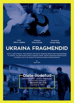 В среду, 2 декабря в 18:00 в Доме кино (ул. Уус, 3) состоится премьера документального фильма Вахура Лаяпеа “Украинские эпизоды”. Документальный фильм расскажет зрителям о ситуации в прифронтовых районах Украины весной 2015 г. Фильм прослеживает трудности и радости сотрудника “Эстонской помощи беженцам” (Eesti Pagulasabi) Инны при доставке лекарств и товаров первой необходимости украинским вынужденным переселенцам.