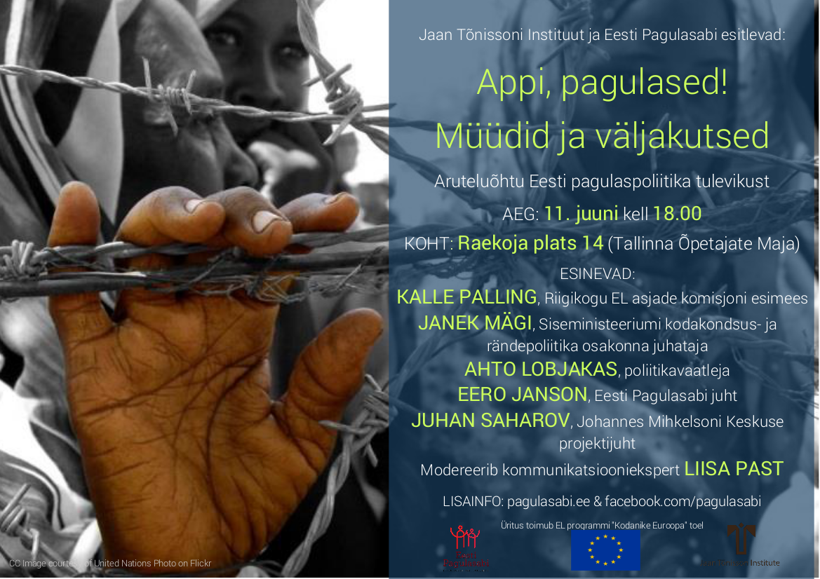 Jaan Tõnissoni Instituut ja Eesti Pagulasabi kutsuvad kõiki huvilisi osalema avalikul aruteluõhtul "APPI, PAGULASED! MÜÜDID JA VÄLJAKUTSED”.